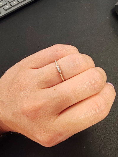 Колечко понравилось. Тонкое, но крепкое, не хлипкое. Ношу с другими кольцами, так больше нравится. К покупке рекомендую. Цена порадовала.