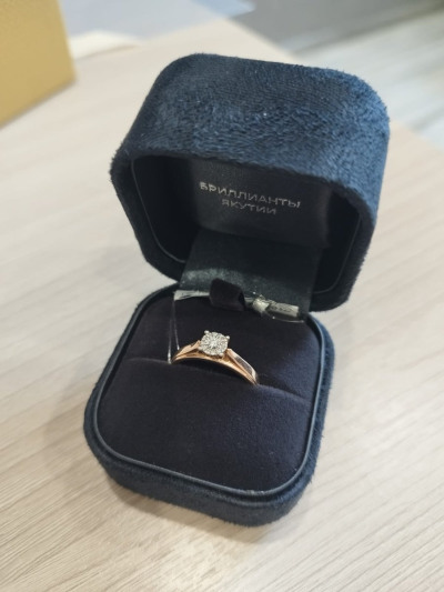 Кольцо с 1 бриллиантом природным, 0.03 карат, огранка круг 57 граней, цвет 4, чистота 5, тип огранки А;