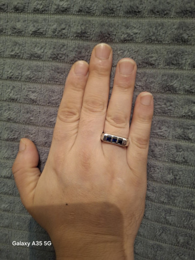 Кольцо с 3 сапфирами синтетическими, 0.83 карат, тип огранки Б;
