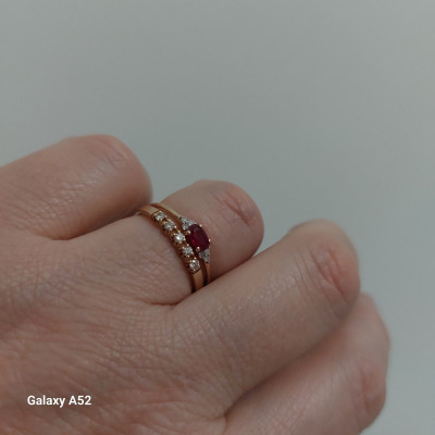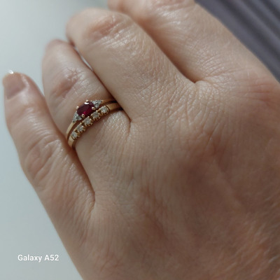 В дополнении дорожки смотрится чудесно, как в прочем и самостоятельно. Рубин блестит, бриллиантики заметны, хоть и мелкие.