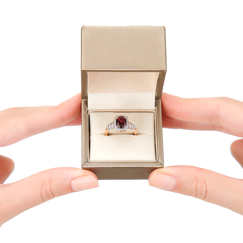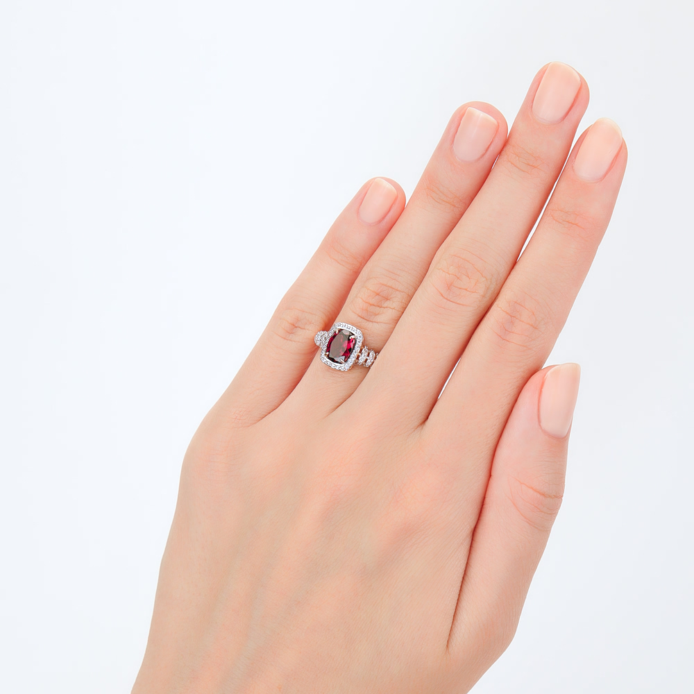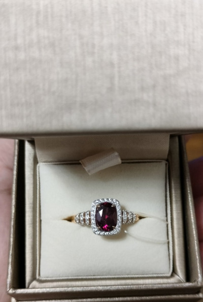 В редких случаях характеристики украшения или упаковка могут иметь отличия от представленных на фото или в описании.Кольцо с 1 родолитом природным, 1.37 карат;