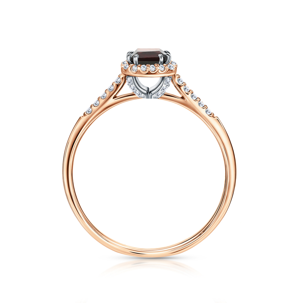 Золотое кольцо с бриллиантами природными и гранатами природными