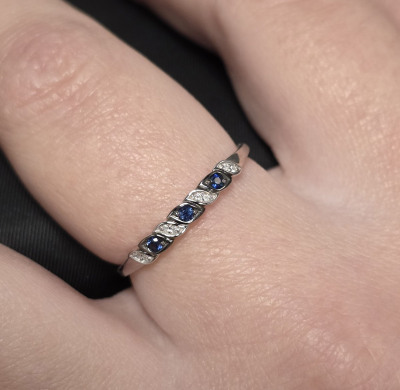 3 сапфирами природными, 0.08 карат, цвет 2, чистота 2, тип огранки В;