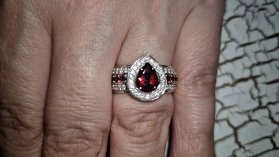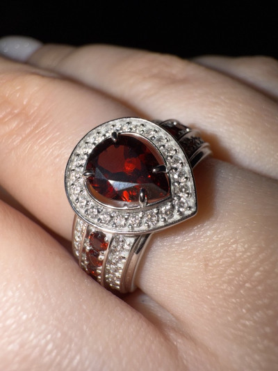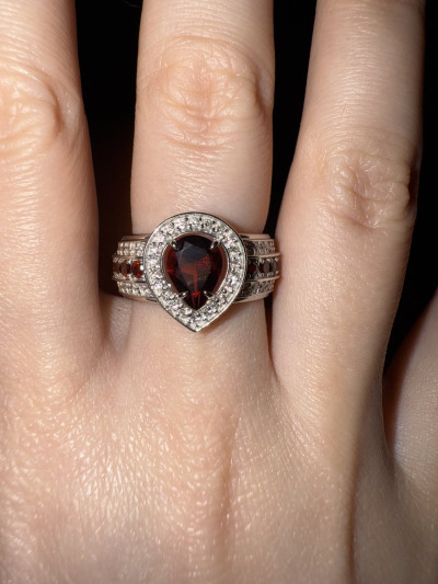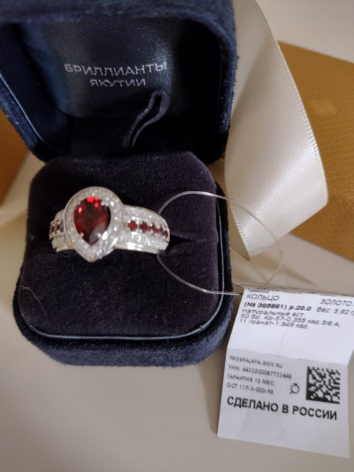 Кольцо чудесное, очень красиво сморится на пальце. Дизайн и гранат в белом золоте - находка ( в отличие от недоделанных серег). Мастеру, как говорят, респект!