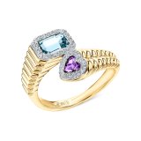 Золотое кольцо с бриллиантами природными, топазами природными и аметистами природными
