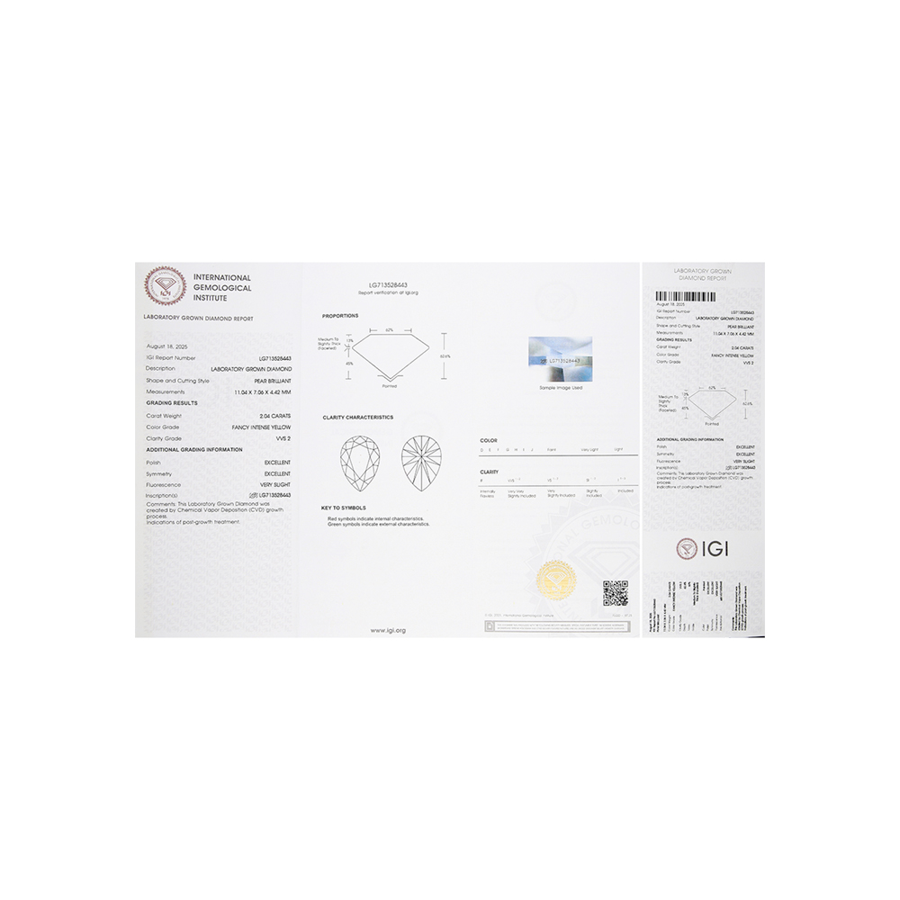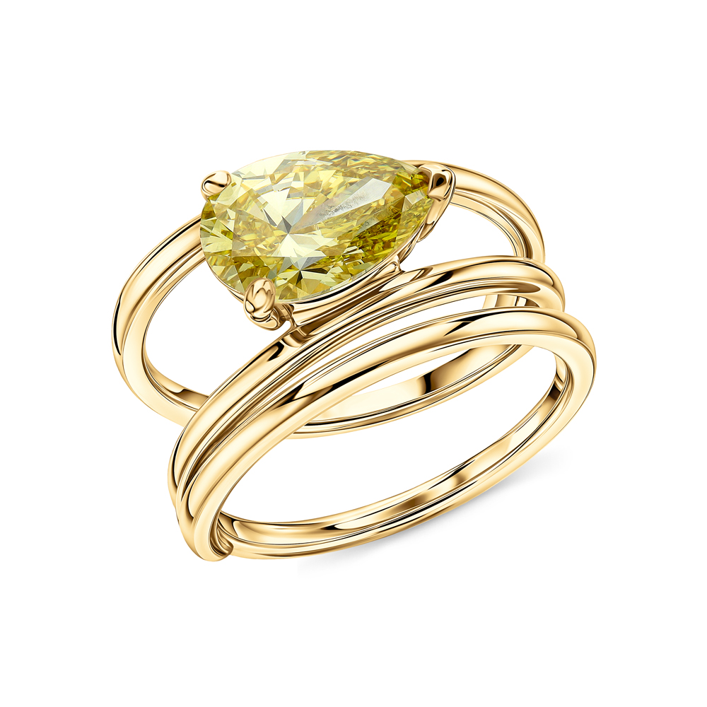 Кольцо с 1 бриллиантом выращенным, 2.07 карат, огранка груша 56 граней, цвет Желтый, чистота 5, тип огранки А;