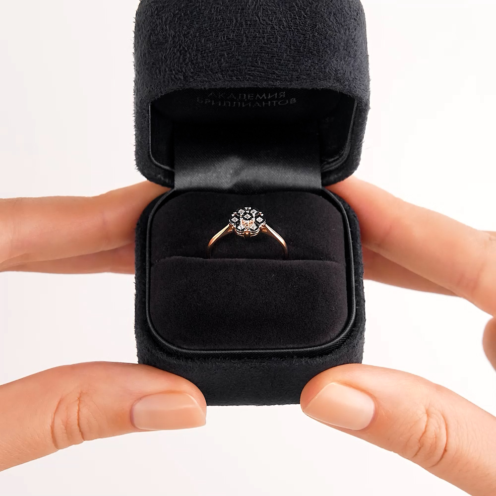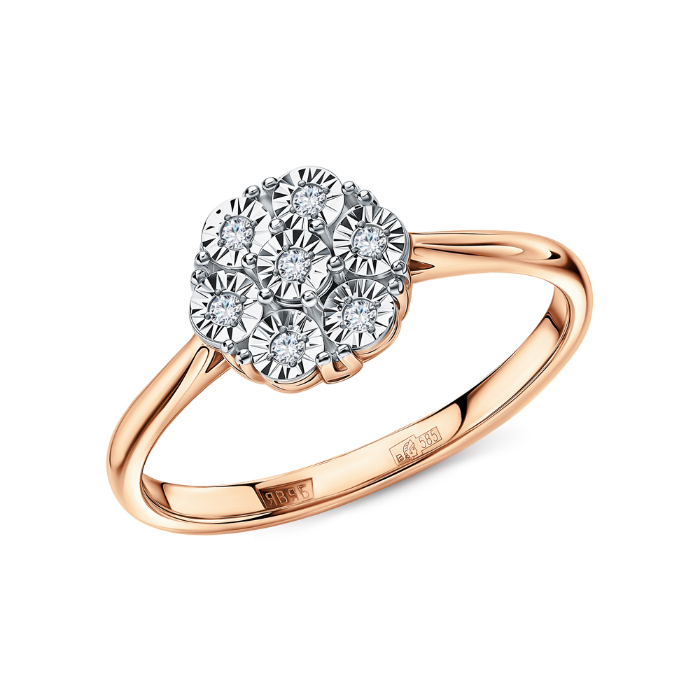 Кольцо с 7 бриллиантами природными, 0.04 карат, огранка круг 57 граней, цвет 3, чистота 6, тип огранки А;