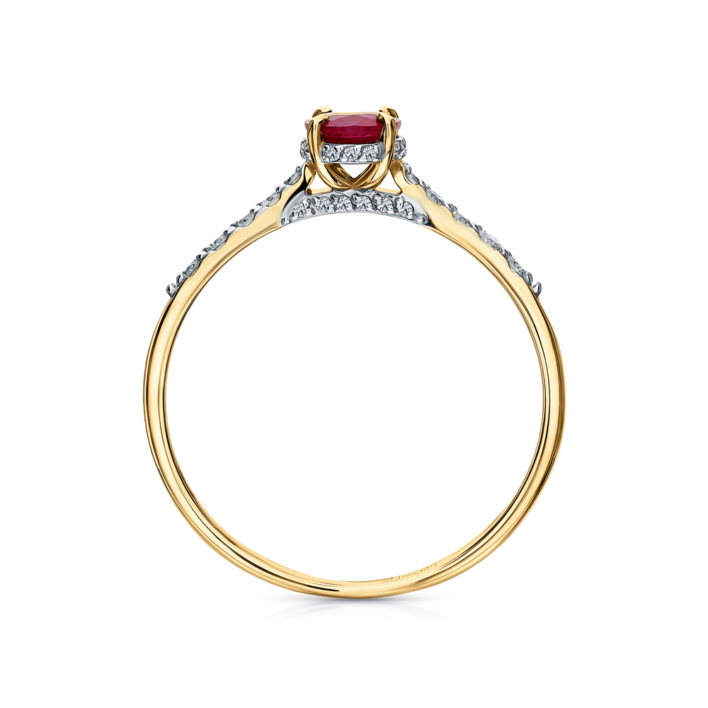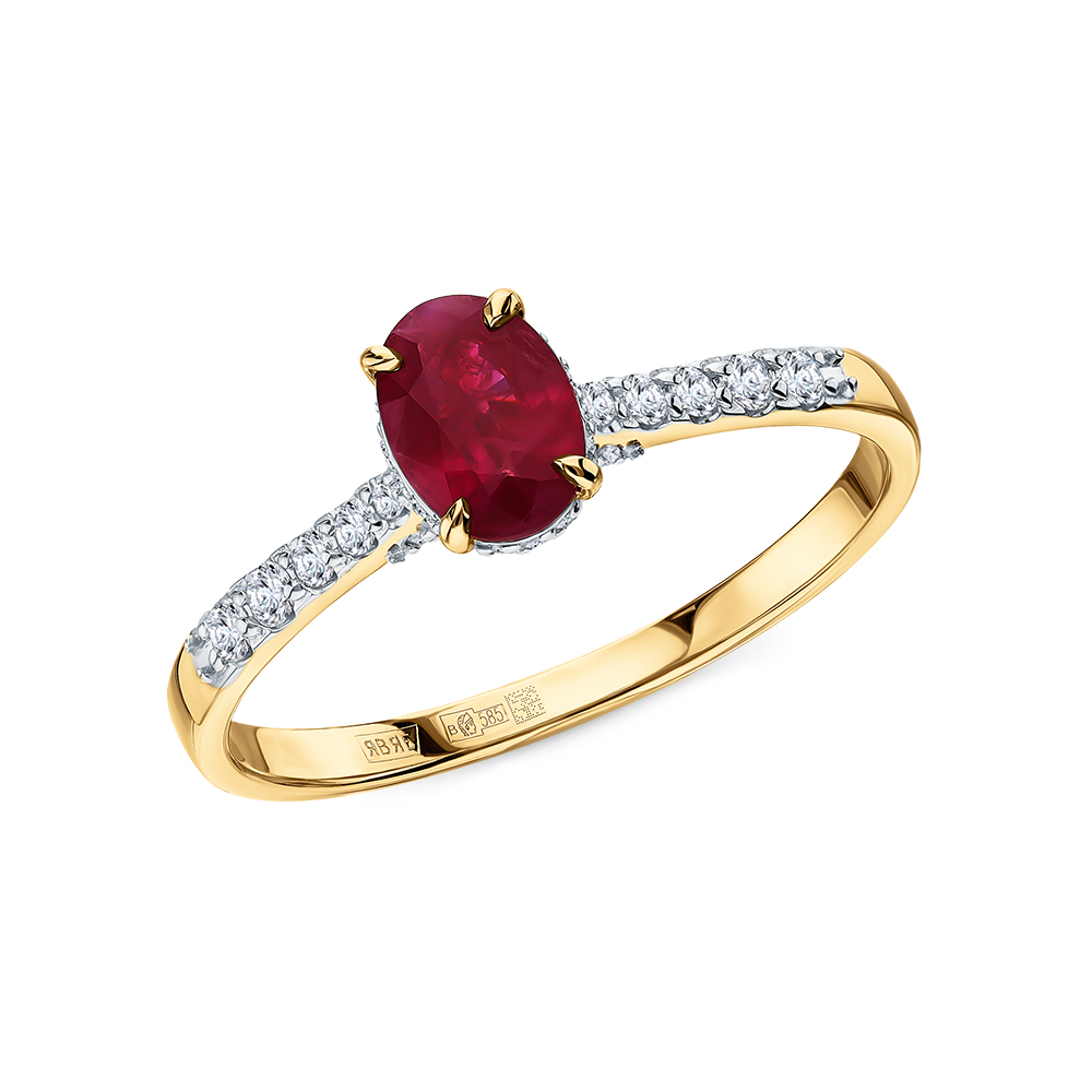 Золотое кольцо с бриллиантами природными и рубинами природными