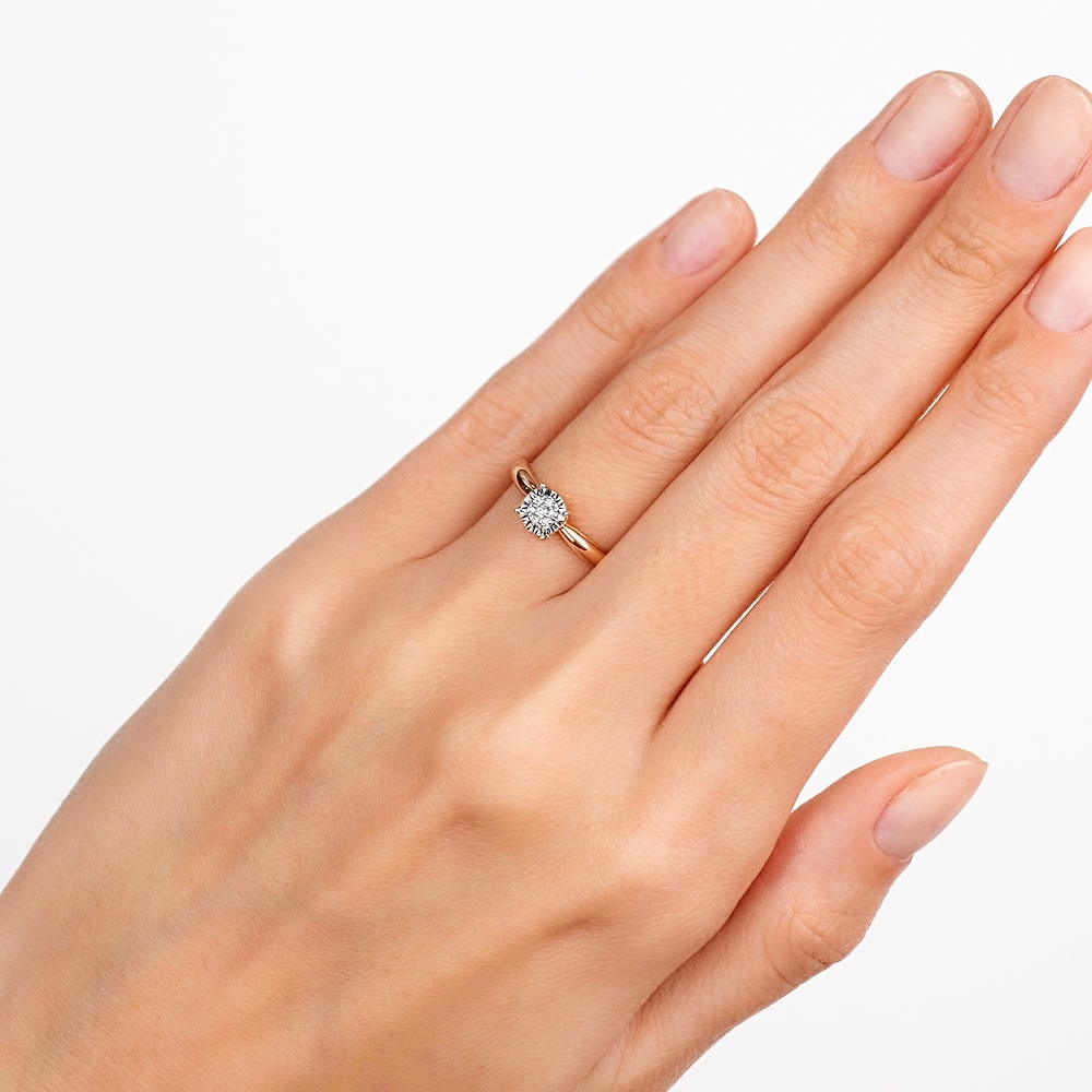Кольцо с 1 бриллиантом природным, 0.007 карат, огранка круг 57 граней, цвет 4, чистота 5, тип огранки А;