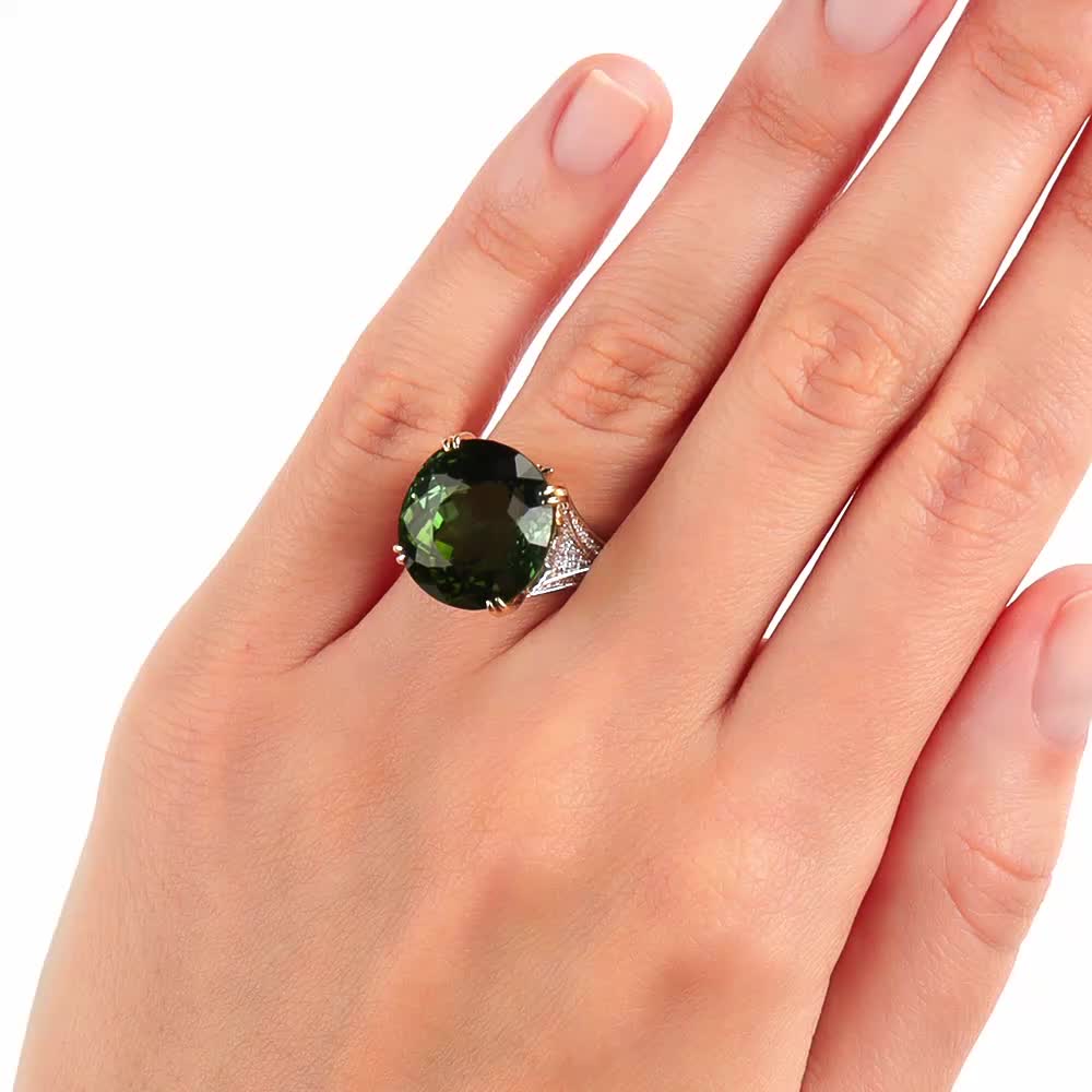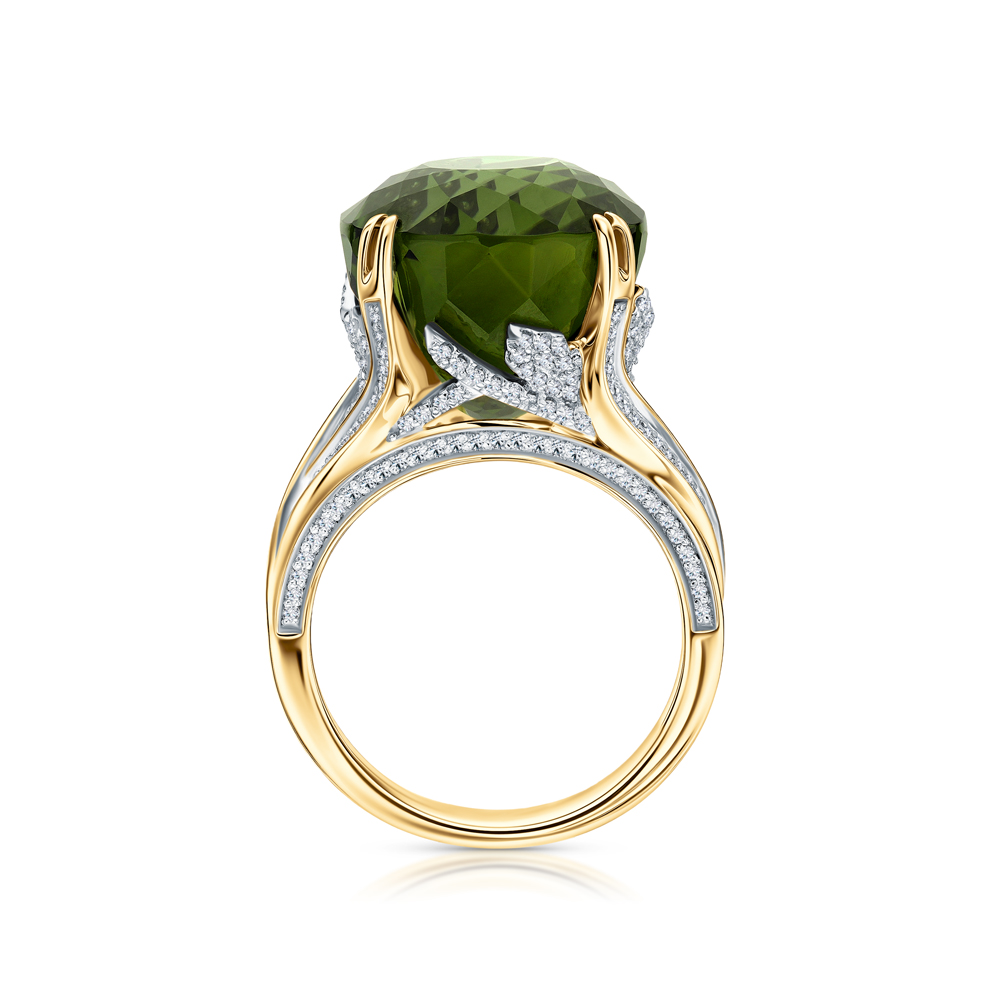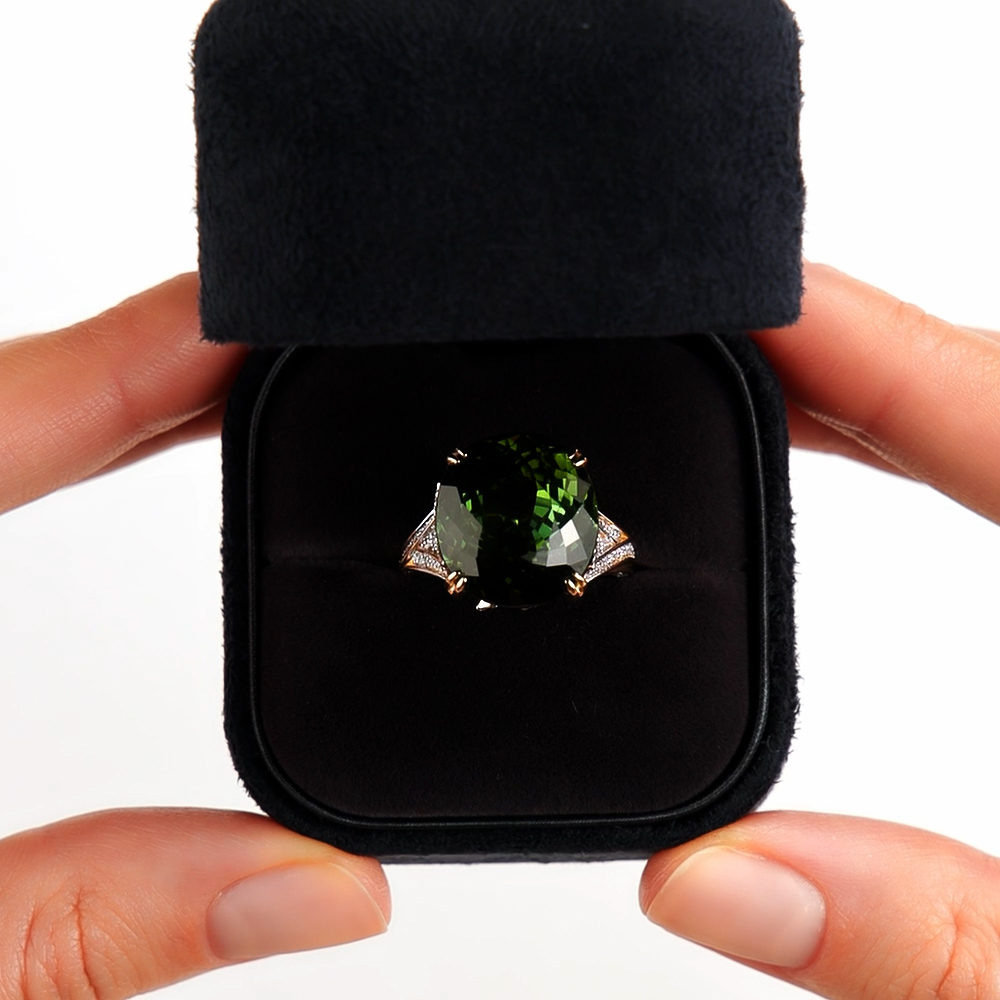 Золотое кольцо с бриллиантами природными и турмалинами природными