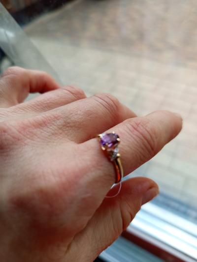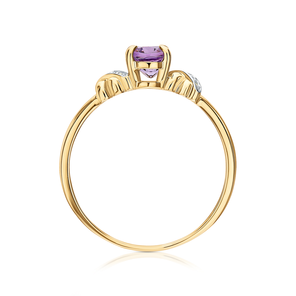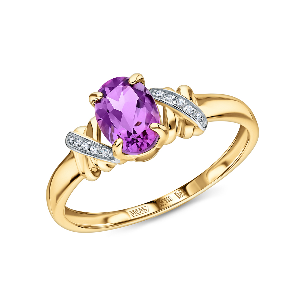 Золотое кольцо с бриллиантами природными и аметистами природными