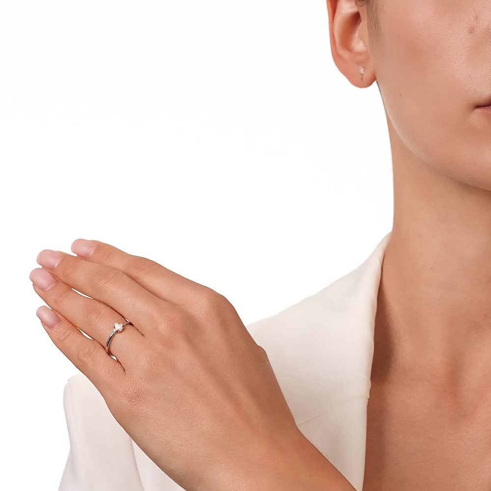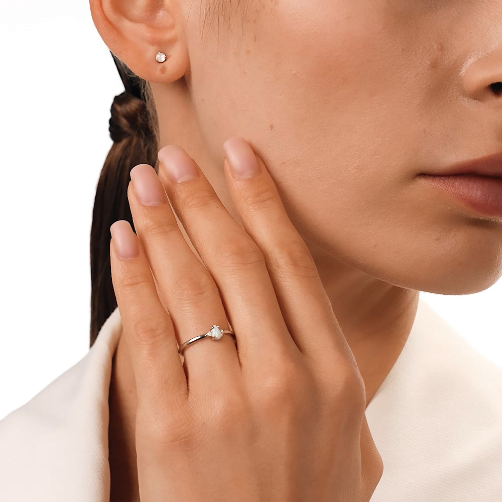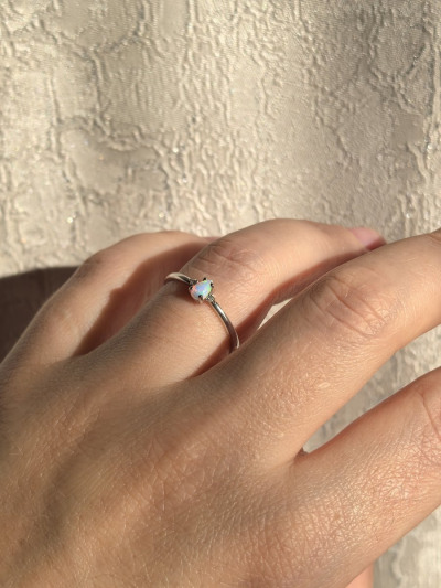 Кольцо с 1 опалом белым синтетическим;