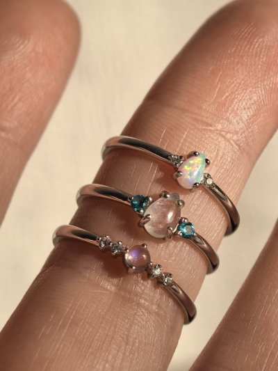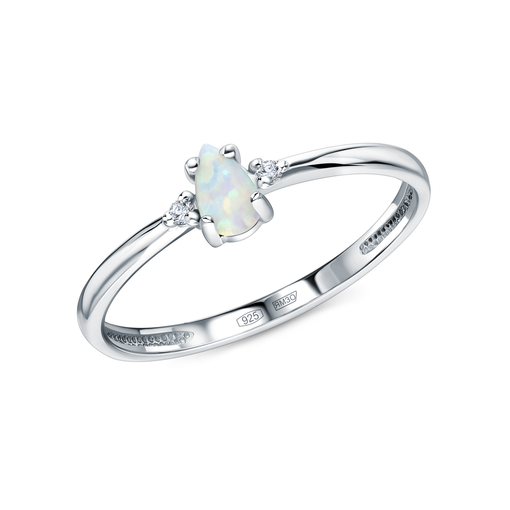 Серебряное кольцо с фианитами и опалами
