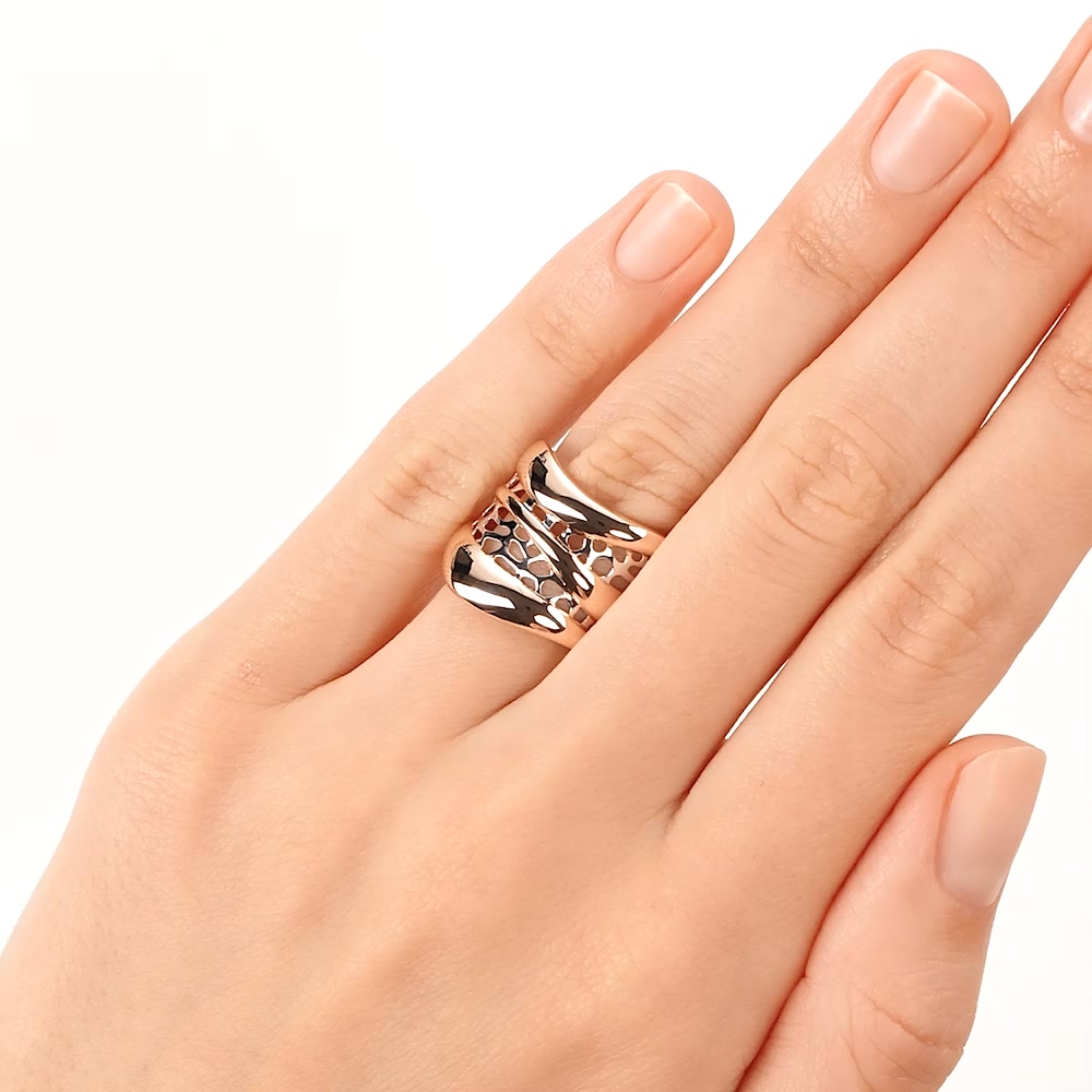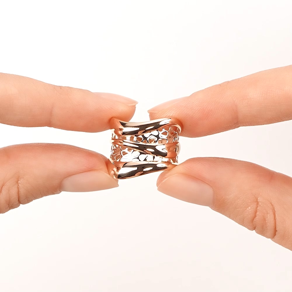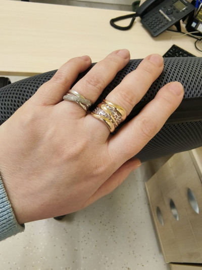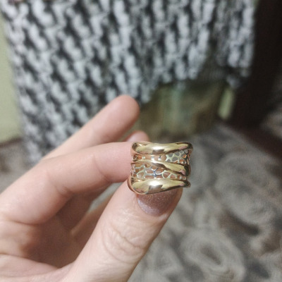 Очень нравится кольцо, широкое, объёмное, но лёгкое. Носить комфортно. Визуально не перегружает.