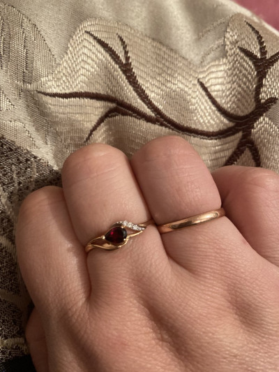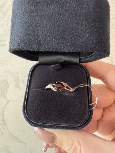 Нежное милое недорогое кольцо с гранотом и бриллиантами, благодарю бесконечно... подарком мужа удался на славу...