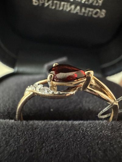 Изящное, заметное кольцо. Прекрасное сочетание граната и бриллиантов (не крошечные, заметные). Игра света в камнях завораживает❤️❤️❤️