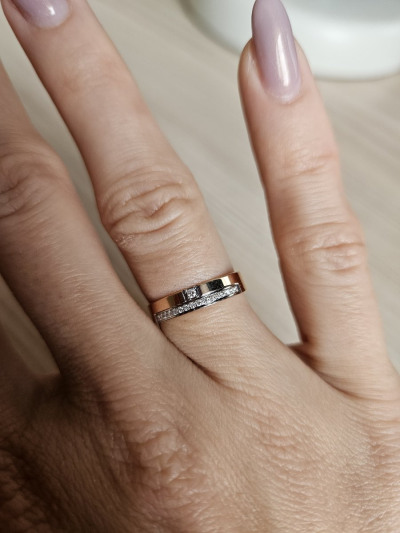Идеальное свадебное кольцо!) 🤩 Я влюбилась в него сразу очень! Красиво очень аккуратно переливаются бриллианты, очень комфортная посадка, т.к. Comfort Fit. Ширина кольца - 4мм, не толстое, и не тонкое) Рекомендую!)🙌