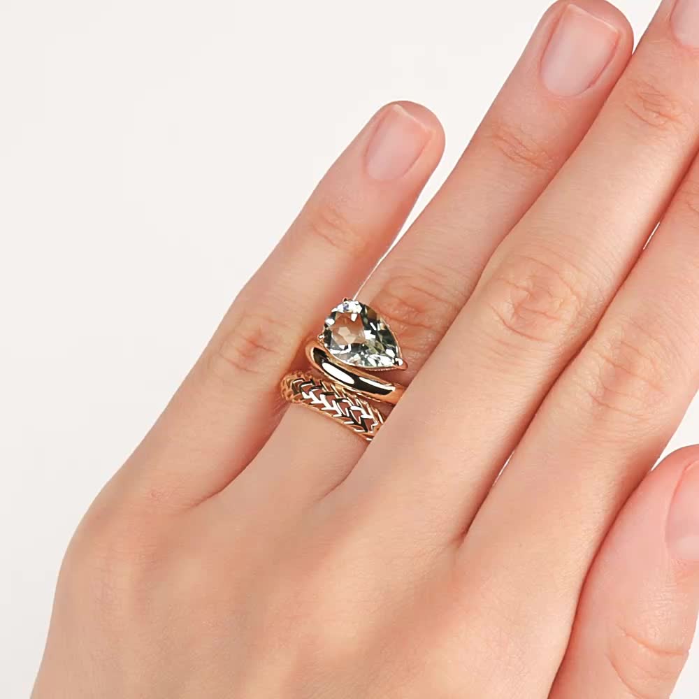 В редких случаях характеристики украшения или упаковка могут иметь отличия от представленных на фото или в описании.Кольцо с 1 празиолитом природным, 2.675 карат;