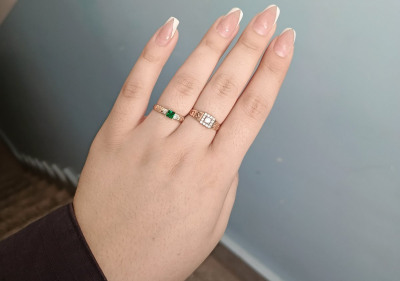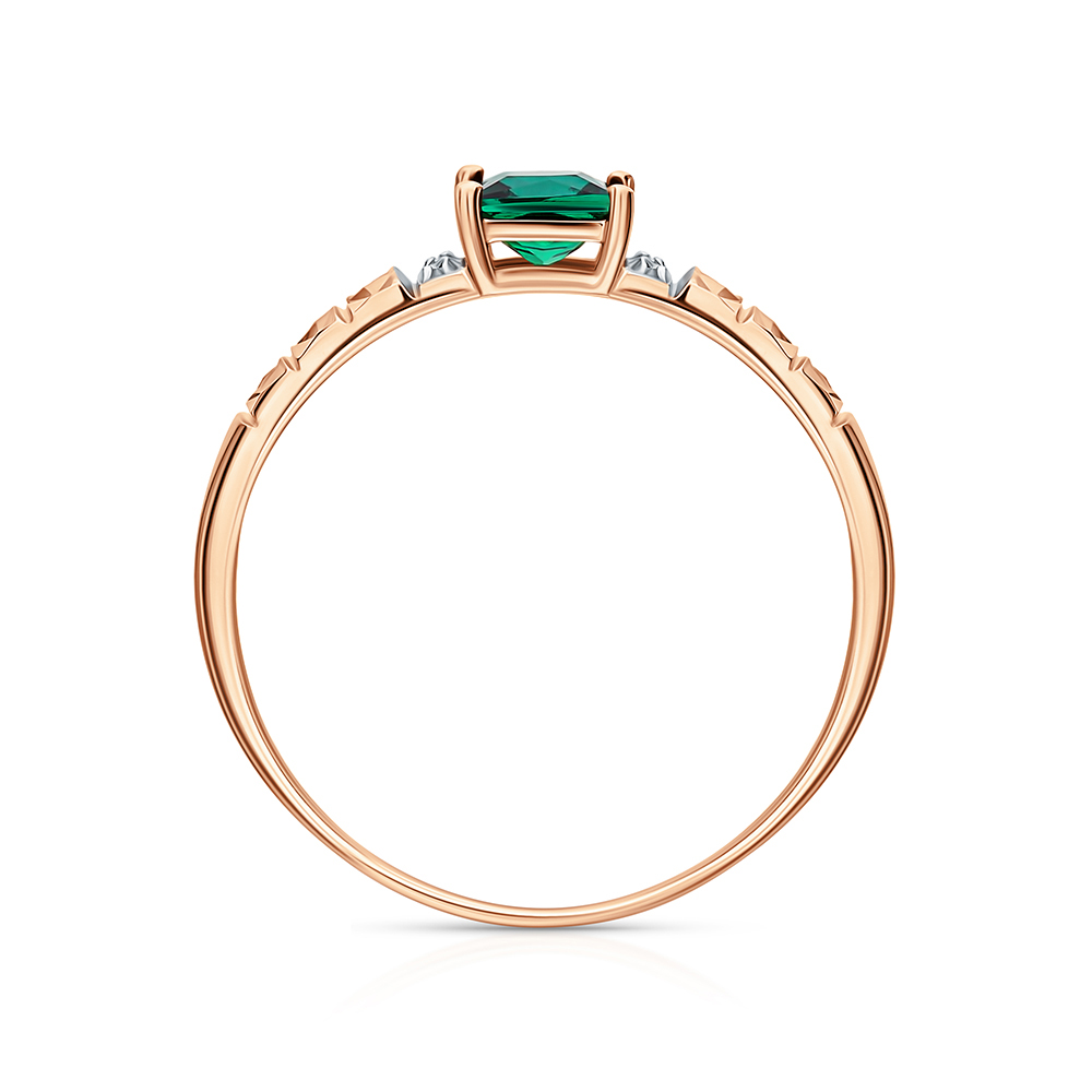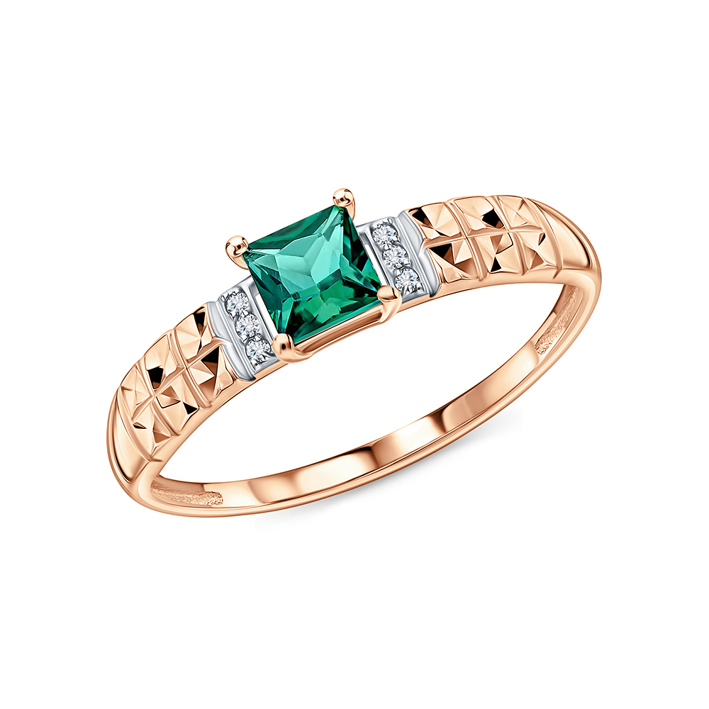 Золотое кольцо с бриллиантами природными и изумрудами выращенными