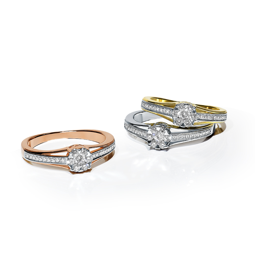 Кольцо с 1 бриллиантом природным, 0.05 карат, огранка круг 57 граней, цвет 3, чистота 6, тип огранки А;