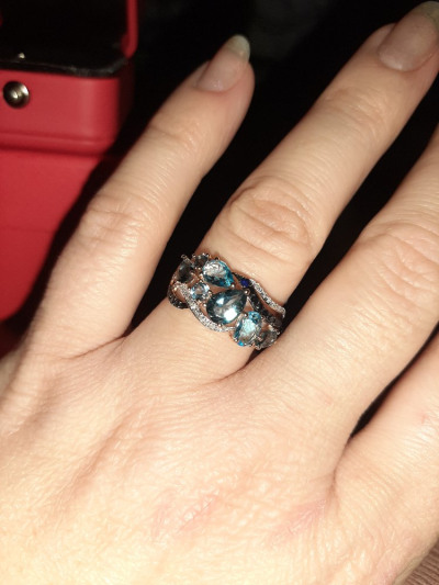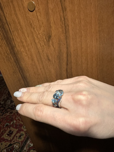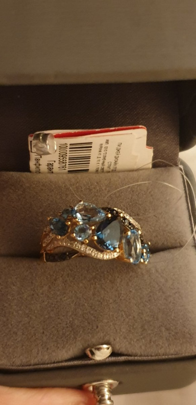 Потрясающе нежное,изящное колечко с топазами,сапфирами и бриллиатами. Любовь с первого взгляда. Топазы и сапфиры это не ново для меня, но в таком сочетании я увидела впервые. Довольно таки крупные топазы покорили с первого взгляда, но когда разглядела в колечке еще и мои любимые сапфиры, а потом еще и бриллианты (что особо приятно), то восторгу небыло предела и как уже говорила влюбилась с первого взгляда. Колечко выглядит шикарно по богатому, совсем не маленькое, не тяжелое и в тоже время увесистое. Девочка -консультант (к сожалению не помню как зовут) не отходила от меня ни на шаг и исполняла все мои капризы в примерках того или иного изделия. Хороший магазин для любителей и главное ценителей шикарных украшений. Тепло, светло и уютно. Ощещение будто дома в удобном кресле примеряещь потрясающие изделия и чувствуешь себя королевой.