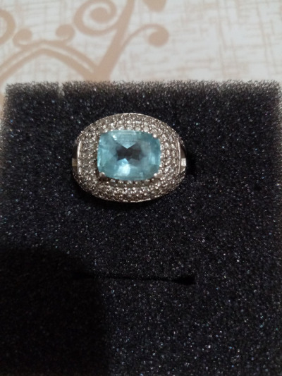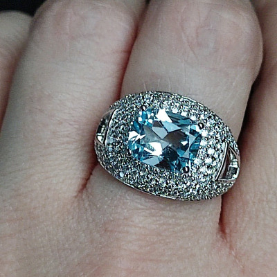 Серебряное кольцо с фианитами и топазами природными