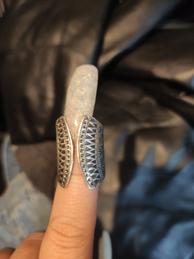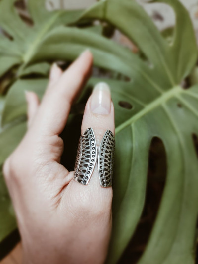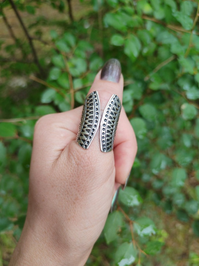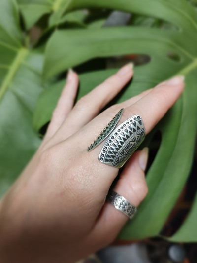 Широкое кольцо с этническими мотивами, можно расширить по размеру. Ношу на указательном пальце, шикарно сочетается с другими украшениями.