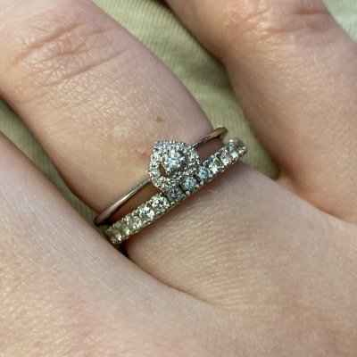 Колечко милое, нежное, бриллиантами переливаются. Небольшое, нежное, подойдет на тонкие пальчики, иначе будет теряться на руке. Хорошо будет смотреться с тоненькие дорожкой в паре
