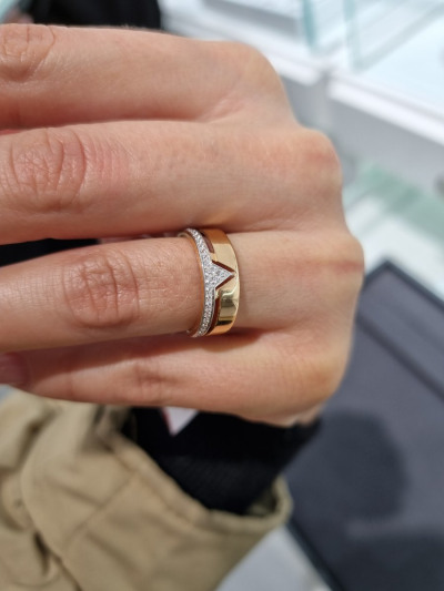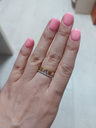 Милое кольцо. Красиво смотрится как отдельно, так и в дополнение например к обручальному .
