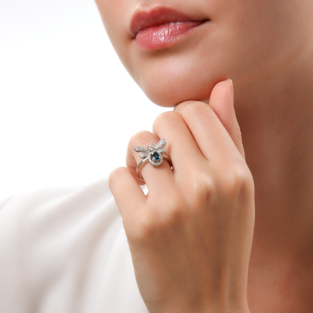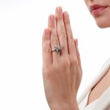 Серебряное кольцо с фианитами и топазами природными