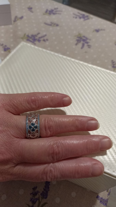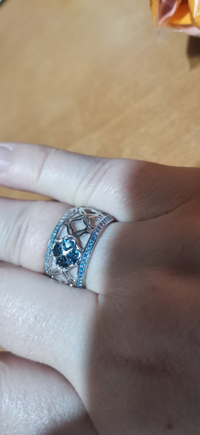 Кольцо широкое, очень красивые голубые фианиты, фото не передает цвет, топаз более темный, кольцо бомба! Единственное-широкое, но это дело вкуса