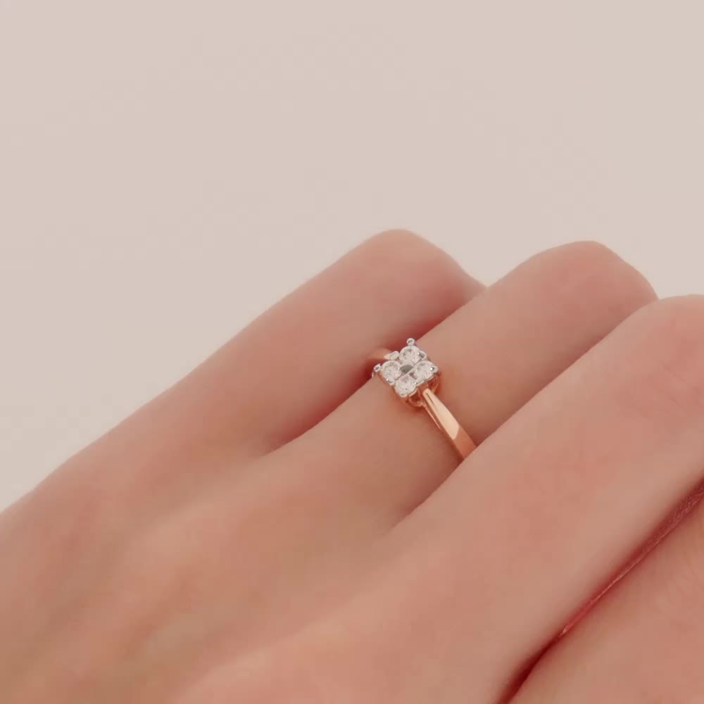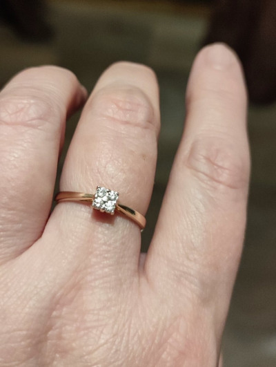 Кольцо украшено 4 бриллиантами, огранка которых имеет 57 граней, создавая потрясающий игр света. Бриллианты имеют вес 0.123 карата, цвет 3 и чистоту 6. Кольцо выполнено из розового золота 585 пробы, придавая ему особую изысканность и шарм. Это уникальное украшение подчеркнет вашу индивидуальность и станет прекрасным дополнением к вашему образу. Оно идеально подходит для особых моментов в жизни или просто для повседневного использования.