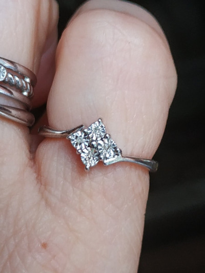 Колечко серебряное с бриллиантами. 4 маленьких бриллианта очень радуют.