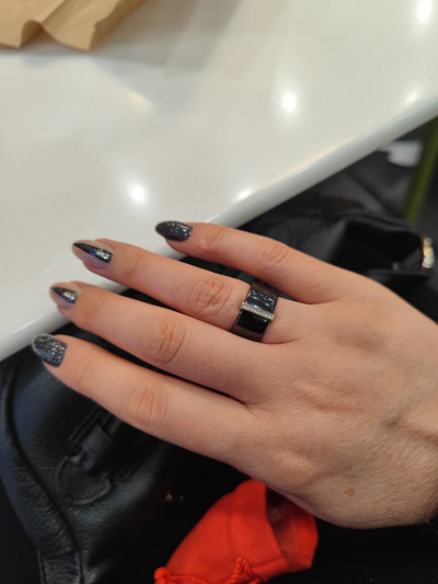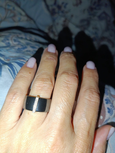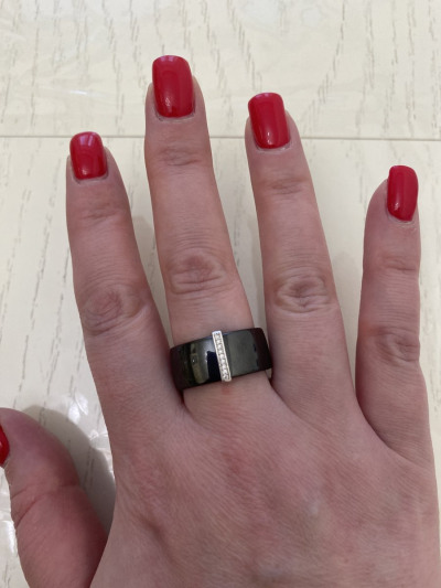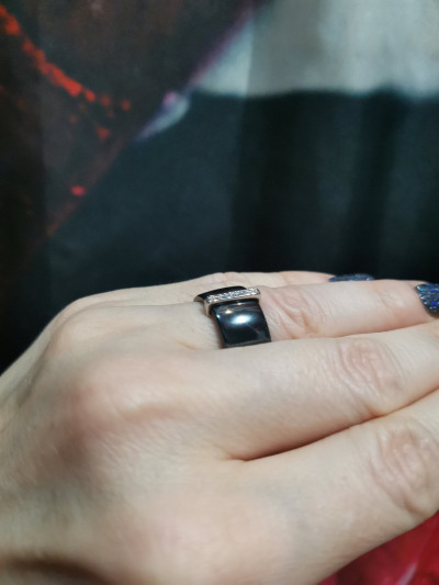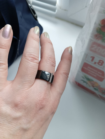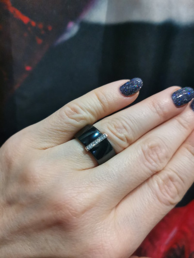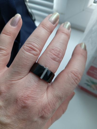 Кольцо чёрное с серебром и фианитами. Очень красивое. Очень понравилась керамика. Оригинально! Буду искать подобные кольца, наверное начну коллекционировать)) Уже есть ещё одно, коричневое с золотом. Супер, спасибо!