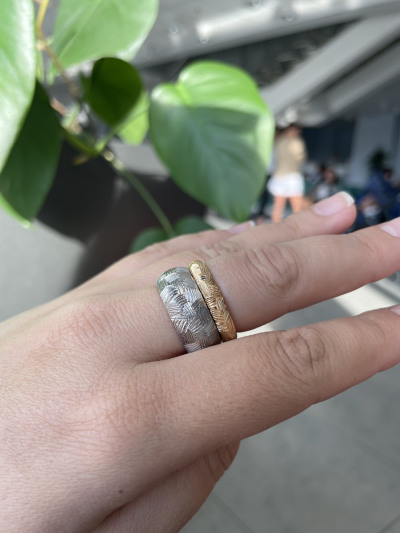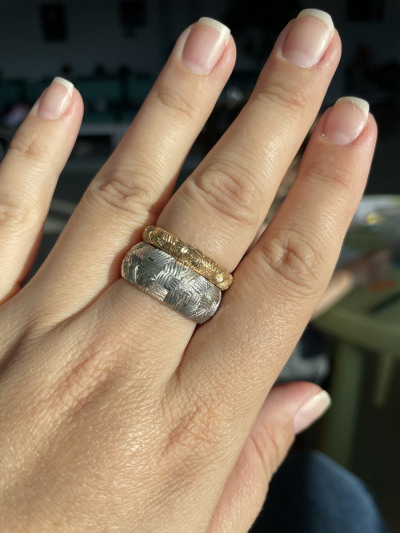 Взяла в комплект к другому кольцу пошире, интересно вышло