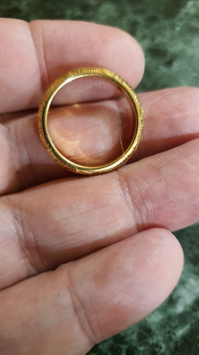 Очень красивое колечко с позолотой и алмазной гранью. Кольцо хорошо сверкает. Оно довольно толстенькое но не широкое. В целом рекомендую.