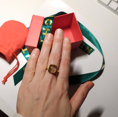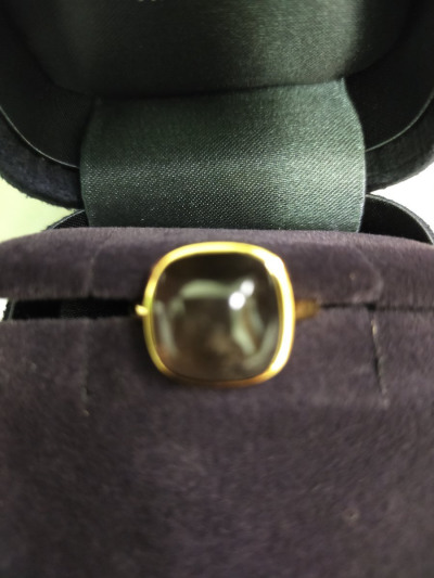 Стильное серебряное кольцо с позолотой производства Италии с раухтопазом -- кабошон! Отличное изделие! Камень крупный! Обращает внимание! Хочу купить серьги к нему!