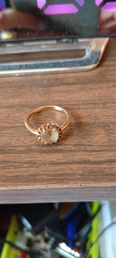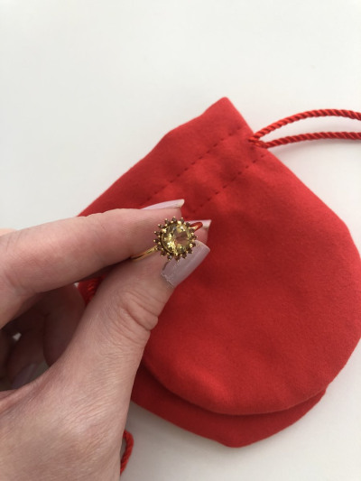 Кольцо приглушённого жёлто-зеленоватого оттенка. Напоминает геральдическое солнце :) Выглядит благородно.