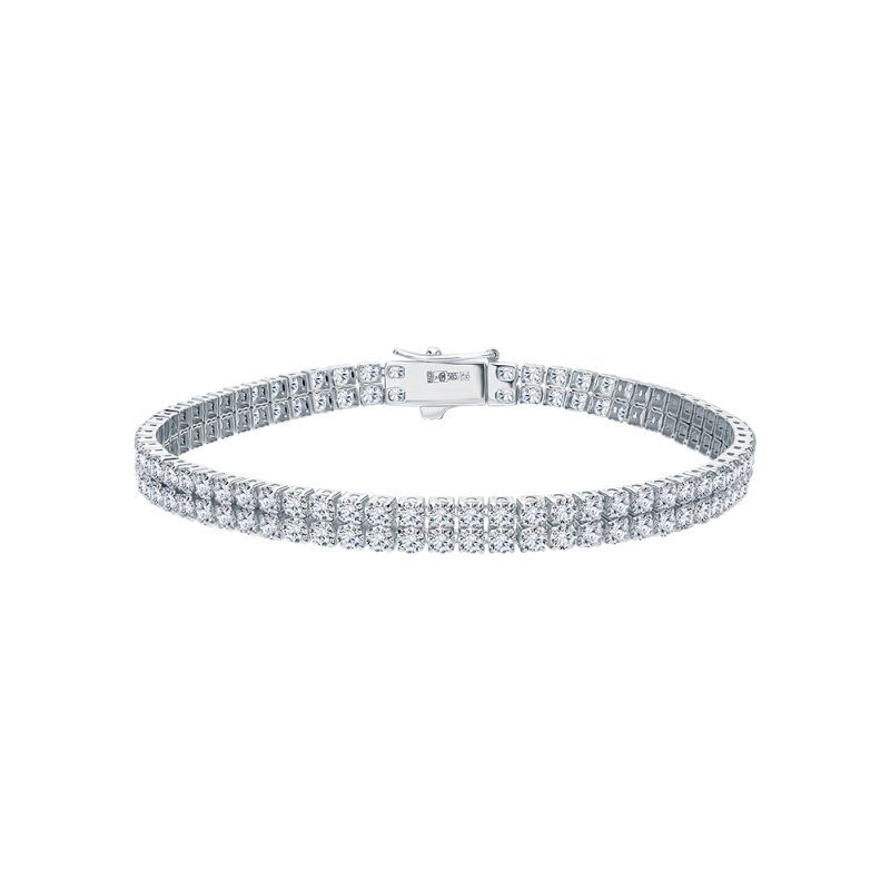 Браслет с 29 бриллиантами природными, 0.36 карат, огранка круг 57 граней, цвет 3, чистота 6, тип огранки А; 24 бриллиантами природными, 0.21 карат, огранка круг 57 граней, цвет 3, чистота 6, тип огранки А; Белое золото 585 пробы.